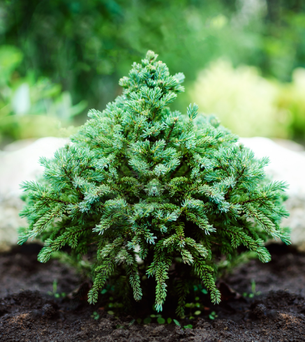 • stromek vysadit do stejné výšky, v jaké rostl v květináči — kmínek nesmí být utopený,