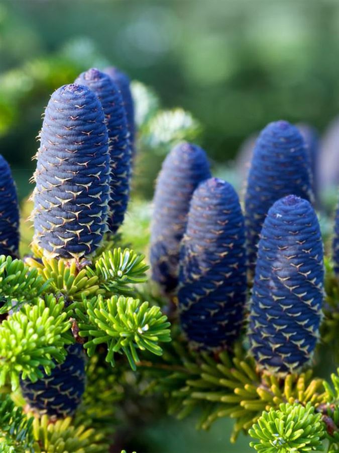 • Vzpřímené šišky, zpočátku fialové, později hnědé