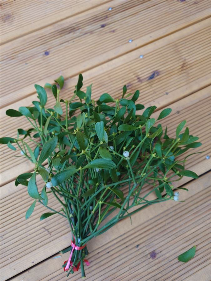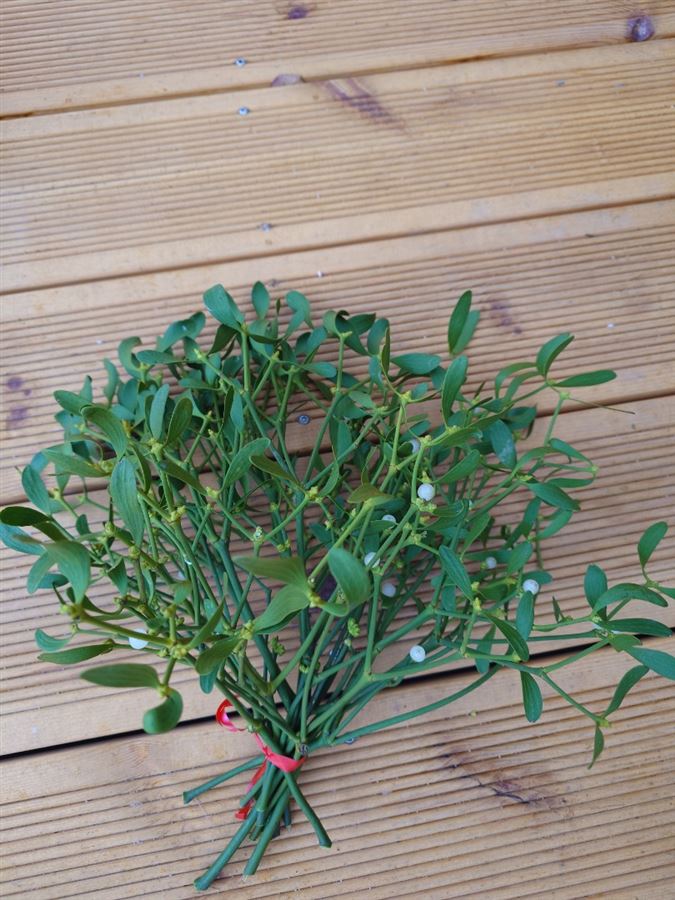 Svazek čerstvého jmelí je neodmyslitelnou součástí vánočních tradic a slavnostní výzdoby. Jmelí se odedávna daruje jako symbol štěstí, zdraví a ochrany domova, proto bývá častým dárkem při vánočních návštěvách rodiny či přátel. Zavěšené nad dveřmi nebo na svátečním stole nejen krásně vypadá, ale podle tradice přináší do domácnosti klid a pohodu. Čerstvé větvičky jmelí jsou vhodné pro samostatné zavěšení i jako ozdoba do věnců, kytic nebo stolních aranžmá. Každý svazek je pečlivě vázán, aby dlouho vydržel svěží a navodil kouzlo svátečních dnů.
