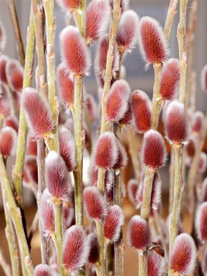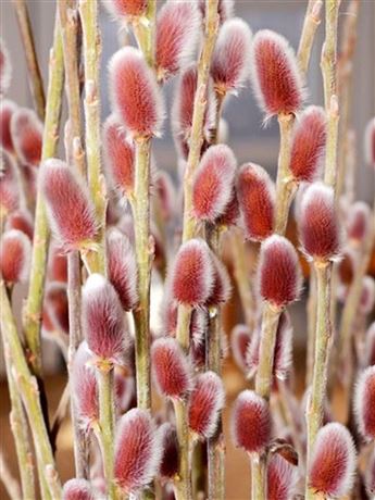 Salix chaenomeloides 'Mount Aso' - hledáte-li do zahrady něco netradičního, vyberte tuto vrbu. Okouzlí vás v jarních měsících barvou svých kočiček. Během února a března se z  velkých pupenů mahagonově hnědé barvy klubou jemné typicky chlupaté kočičky v odstínech růžové přecházející až po červenou. Bývají poměrně veliké a mohou mít až 5 cm. Teprve po nich se začnou objevovat listy oblečené do syté zeleně se stříbrem vespod. Velikostí se tato vrba pohybuje okolo 2-4 metrů. Stejně však jako její příbuzné, i ona velice dobře snáší řez a tak ji můžete bez problému držet i menší. Doporučujeme slunečné stanoviště a vlhčí půdu, občas přihnojíme. Je plně mrazuvzdorná v našich podmínkách.
