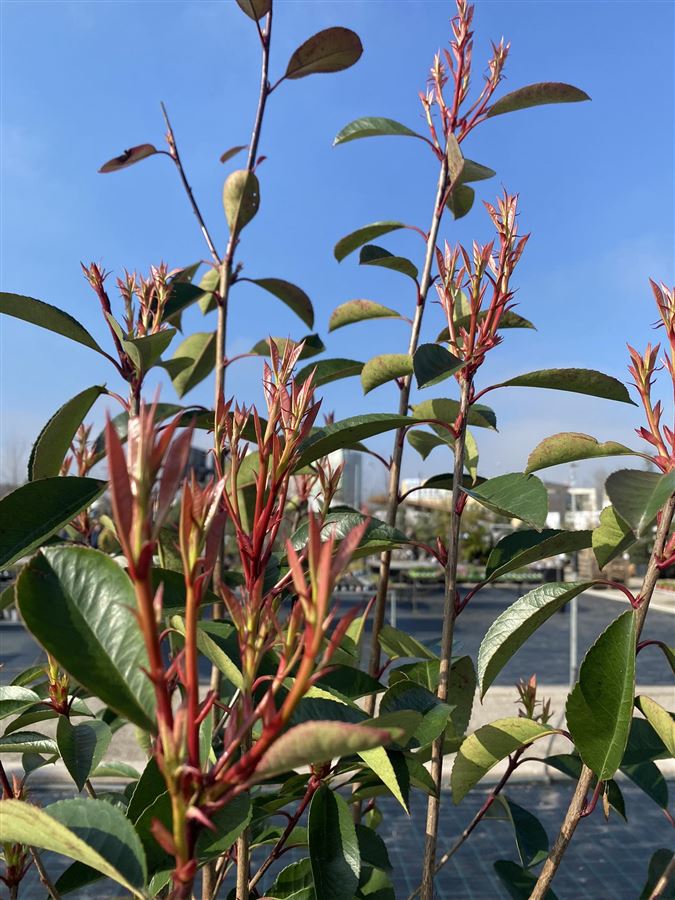 Photinia fraseri ‘Red Robin’ je mezi okrasnými dřevinami pojem. Tento stálezelený keř, původem z křížení Photinia glabra a Photinia serratifolia, si získal popularitu díky svému jedinečnému vzhledu – zejména díky zářivě červeným mladým listům, které na jaře i během sezóny vytvářejí výrazný barevný efekt.