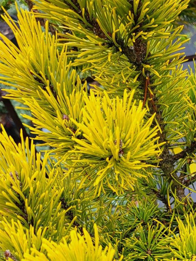 Pinus mugo 'Carsten' - borovice kleč . Hledáte - li stromek s přidanou hodnotou, něčím navíc, pak sáhněte po tomto kultivaru. Je to totiž blízký kamarád známé Wintergold, kde už z názvu je jasně patrné, čím je tato borovice jedinečná. Na zimu se totiž její krásně sytě zelené jehličí převlékne do zářivě žlutého kabátku a obmění tak fádní ,,zelenou,, šeď ve výsadbě přes chladné měsíce. Na jaře se přebarvuje zpět do zelené barvy. Je to ideální volba pro skalky a nádoby vzhledem k velikosti pouhých desítek cm ( 0,6m)  při stejné šířce.  Borovic existuje na 100 druhů a vzhledem k její nenáročnosti a pestrosti se stává snadno součástí našich zahrad. Borovice mají poměrně hluboké kořeny a tak jsou dobře ukotveny a odolávají  i silným povětrnostním podmínkám. Co se týče vzrůstu, barvy a druhu jehličí , bylo vyšlechtěno nespočet druhů. Všechny je ale spojují  stejné nároky. Všechny milují ideálně slunná stanoviště. Ucházející je i polostín. Pamatujte však na to, že pro stinná místa je tento strom vysloveně špatnou volbou. Nebude tam šťastná ani borovice a při pohledu na to, jak skomírá, nebudete šťastni ani vy. Proto opravdu pečlivě vybírejte místo, kam vaši jehličnatou krásku zasadíte. Co se týče vody - tady pozor. Běžně se setkáváme s nešvarem mnohých zákazníků., kteří své borovičky prakticky utopili. Než ji zalijete , ujistěte se, že Váš nápad sdílí s vámi a přesvědčte se ideálně posouzením vlhkosti půdy několik cm pod úrovní terénu, že je půda suchá. Pokud ne , od zálivky upusťte. Raději než přemokření dává přednost suchu. Pamatujte na to. Šišky na stromě zůstávají několik let a jakmile dozrají , padají na zem. Pokud byste raději své borovičky chtěli kompaktnější či jim ,,domluvit,, na velikosti, můžete jejich nové přírůstky (neboli svíce) zaštipovat a tím podpořit stromek v huňatějším habitu. Čiňte tak prsty ( nikoliv nůžkami) a ponechte vždy alespoň jednu třetinu nového výhonu, aby byl efekt maximálně přirozený.