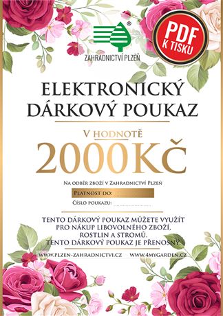 Dárkový poukaz v elektronické podobě v hodnotě 2000 Kč na odběr libovolého zboží z naší nabídky. Zasíláme emailem v PDF souboru, můžete jej vytisknout na vaší tiskárně. Platnost poukazu je 12 měsíců. Zobrazit více