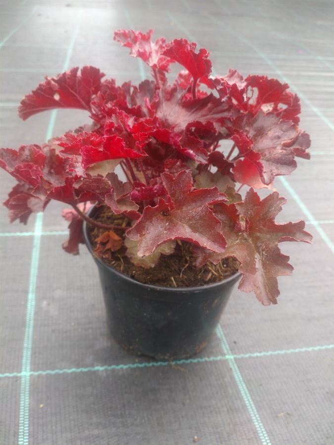 KHeuchera americana 'Melting Fire', známá také jako dlužicha, je atraktivní trvalka, která se vyznačuje výraznými, tmavě červenými až mahagonovými listy s kudrnatým okrajem. Tato rostlina dorůstá do výšky přibližně 30-40 cm a vytváří kompaktní trsy. Květy jsou drobné, bílé nebo růžové, a objevují se na dlouhých stoncích během léta. Pro úspěšné pěstování Heuchera americana 'Melting Fire' je důležité zvolit polostinné až stinné stanoviště. Tato rostlina může růst i na slunném místě, ale je nutné zajistit dostatečnou vlhkost půdy, aby nedošlo k přehřívání a vysychání listů. Nejlépe se jí daří na místech s dopoledním sluncem a odpoledním stínem. Heuchera americana 'Melting Fire' nejlépe roste v dobře propustné, humózní a středně vlhké půdě, která by měla být mírně kyselá až neutrální. Dobrá drenáž je klíčová, protože dlužicha nesnáší přemokření, které může vést k hnilobě kořenů. Pravidelná zálivka je důležitá, zejména během suchých období. Půdu udržujte rovnoměrně vlhkou, ale vyhněte se přemokření. Ideální je zalévat ráno, aby rostlina měla celý den na oschnutí. Na jaře je vhodné aplikovat vyvážené hnojivo s pomalým uvolňováním nebo přidat kompost, který obohatí půdu o potřebné živiny. Hnojení podporuje zdravý růst a bohaté kvetení. Pravidelné odstraňování odkvetlých květů a poškozených listů pomáhá udržovat rostlinu esteticky přitažlivou a zdravou. Na jaře je také vhodné odstranit staré listy, aby se podpořil růst nových. Heuchera americana 'Melting Fire' se snadno množí dělením trsů na jaře nebo na podzim. Množení lze provést také pomocí řízků, které zakořeňují poměrně snadno. Tato rostlina je obecně odolná vůči většině chorob a škůdců, ale při nadměrné vlhkosti může být náchylná k hnilobě kořenů. Dobrá drenáž a dostatečná cirkulace vzduchu kolem rostliny pomůže těmto problémům předejít. Dodržováním těchto základních pokynů můžete úspěšně pěstovat Heuchera americana 'Melting Fire' a těšit se z jejích nádherných, tmavě zbarvených listů a jemných květů po mnoho let. Odolnost vůči mrazu: Mrazuvzdorný do -30 °C.