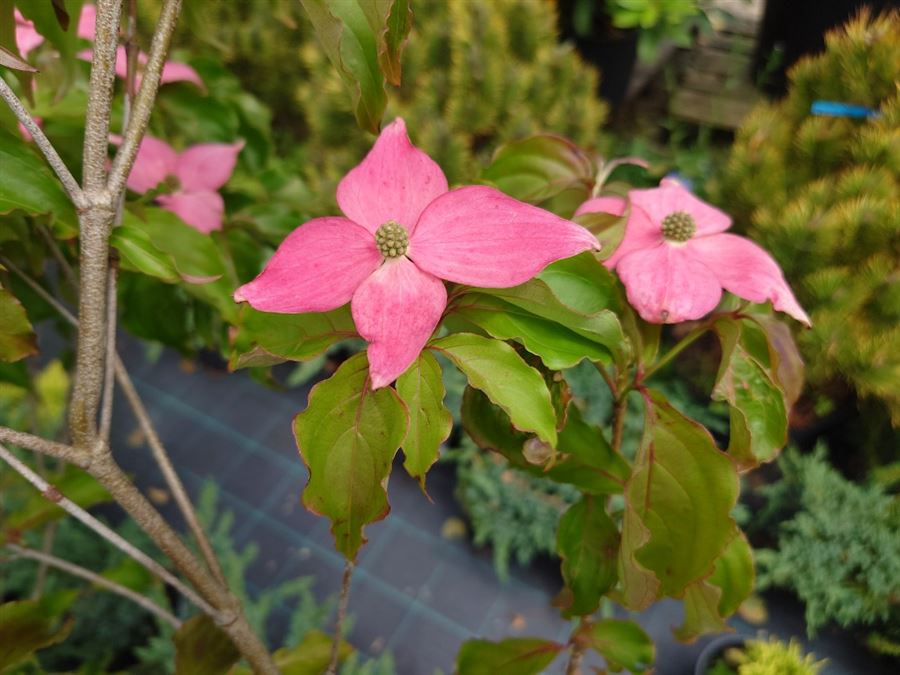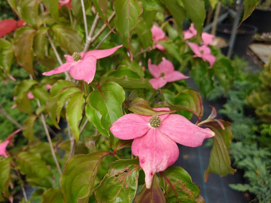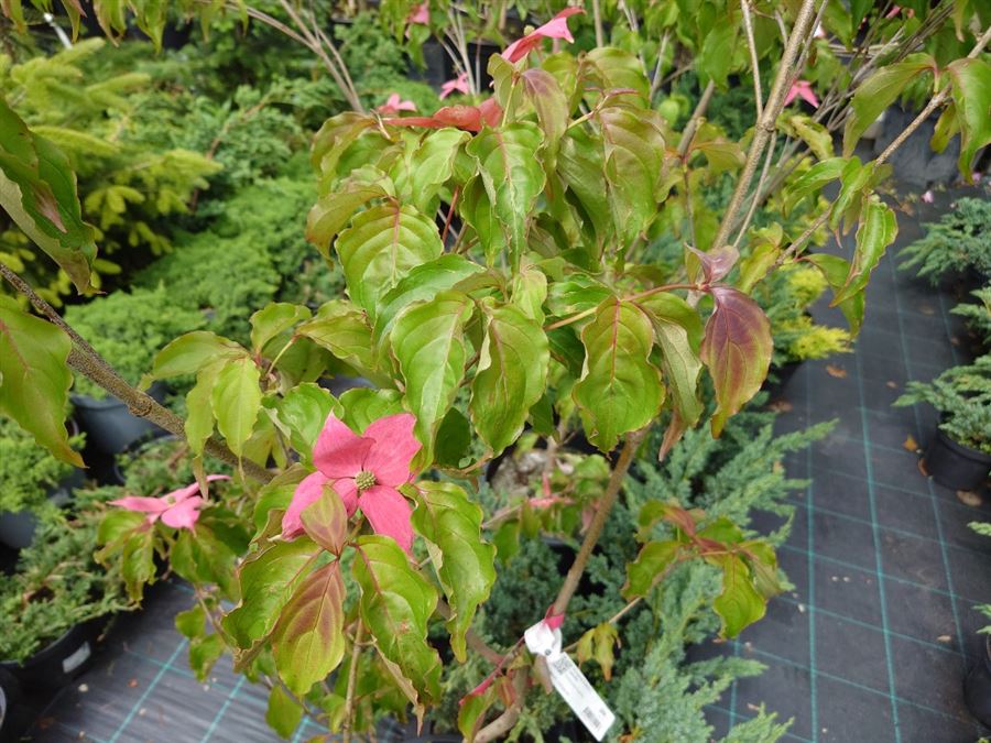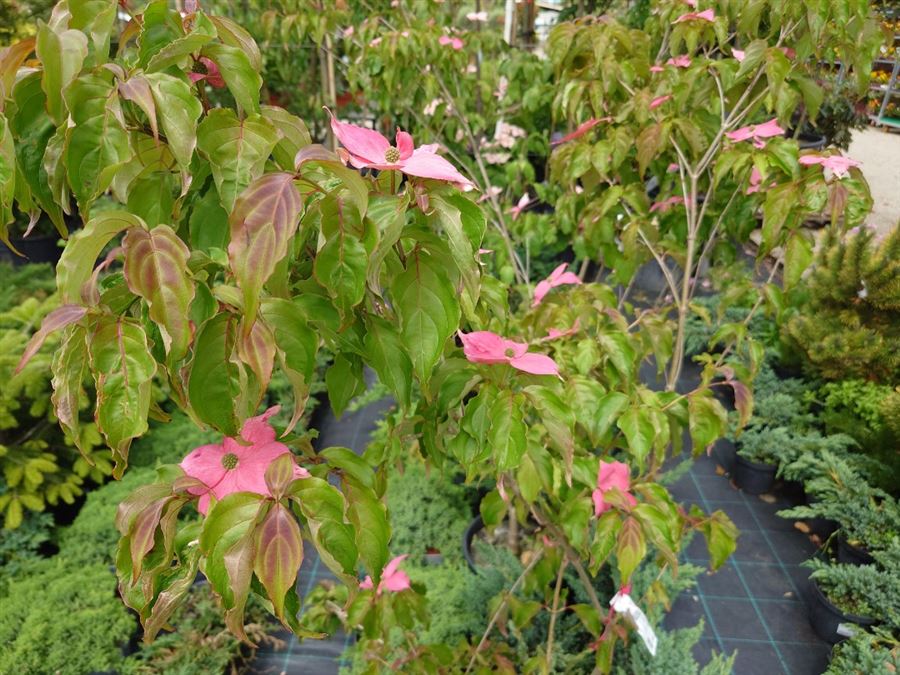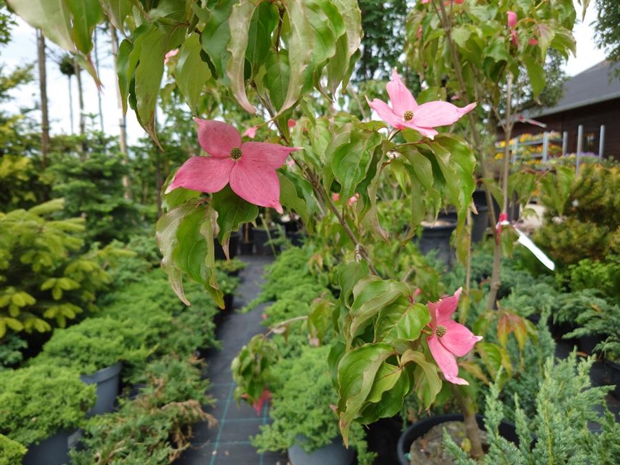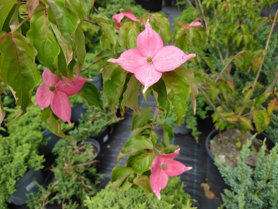 Cornus kousa 'Scarlet Fire' je úžasným doplňkem každé zahrady se svými ohnivě červenými květy a elegantním listím. Tento kultivar je známý pro svou kompaktní velikost a bohaté kvetení, díky čemuž je oblíbenou volbou mezi zahradníky. Živé červené listeny „Scarlet Fire“ vytvářejí výrazný kontrast proti tmavě zeleným listům a dodávají krajině nádech dramatičnosti. Z hlediska pěstování se Cornus kousa 'Scarlet Fire' daří v dobře propustné půdě a preferuje slunné až částečně zastíněné stanoviště. Pravidelná zálivka je nezbytná, zejména v horkých a suchých obdobích, pro zajištění zdraví a vitality rostliny. Prořezávání se doporučuje na konci zimy, aby si zachoval svůj tvar a podpořil nový růst. Jednou z klíčových vlastností 'Scarlet Fire' je její odolnost vůči chorobám a škůdcům, což z ní činí rostlinu nenáročnou na údržbu pro zkušené i začínající zahradníky. Ať už vysazený jako samostatný exemplář nebo ve skupině, tento kultivar jistě zaujme svou krásou a kouzlem. Závěrem lze říci, že Cornus kousa 'Scarlet Fire' je nezbytnou rostlinou pro každého zahradního nadšence, který chce dodat svému venkovnímu prostoru nádech barvy a elegance.
