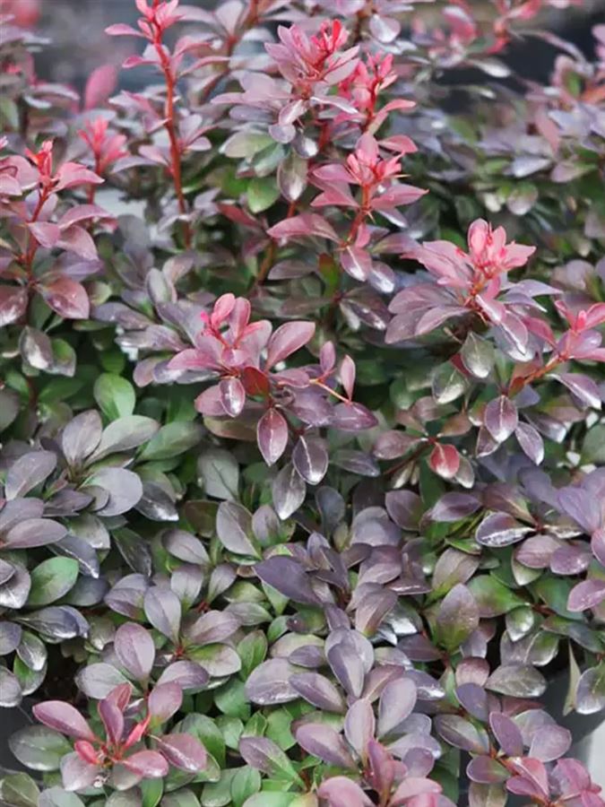 Velmi odolný nízký keřík, vyhledávaný zvláště pro jeho vejčité drobné listy, které se na sluníčku zbarvují do temné bordové a na podzim do karmínově červené. Zobrazit více