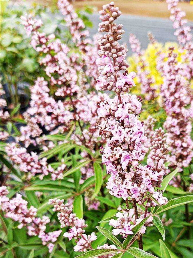 Vitex agnus-castus 'Galactic Pink', známý také jako drmek obecný 'Galactic Pink', je opadavý keř dosahující výšky 1-1,5 metru. Tento kultivar je ceněn pro své růžové květy, které kvetou od července do září. Rostlina preferuje plné slunce a dobře propustnou, úrodnou půdu. Je mrazuvzdorná do USDA zóny 6-9, což znamená, že snáší teploty až do -23 °C. Drmek obecný 'Galactic Pink' je ideální pro smíšené záhony, bylinkové zahrady a jako solitérní rostlina. Pravidelná zálivka je důležitá, zejména během suchých období. Tento keř je také ceněn pro své léčivé vlastnosti a nízké nároky na údržbu.