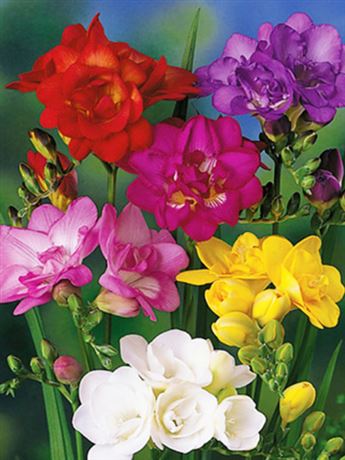 Freesia 'Double MIX' je odrůda s elegantními květy v různých odstínech, které vytvářejí pestrou a veselou paletu barev. Květy mají typickou vůni, která může zahrádku oživit. Rostlina dosahuje výšky přibližně 30-40 centimetrů a je vhodná pro výsadbu do truhlíků, květináčů nebo předních partií záhonů. Preferuje slunné a teplé stanoviště s dobře propustnou půdou, která má dobrou schopnost udržovat vlhkost. Před výsadbou je vhodné půdu obohatit kompostem a organickým hnojivem. Freesia 'Double MIX' vyžaduje pravidelnou zálivku během vegetačního období. Co se týče odolnosti vůči mrazu, není příliš odolná, a proto v chladnějších oblastech může vyžadovat ochranu.