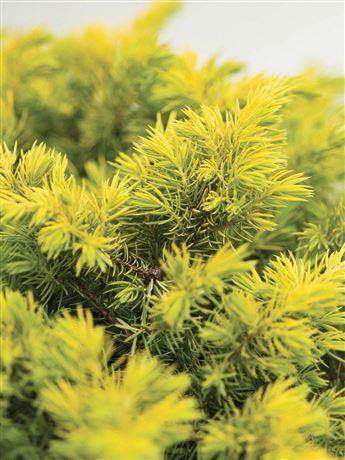 Tento plazivý jalovec na jaře září zlatými jehličím, které se přes léto mění na zelenou. Tvoří vyšší koberce a preferují slunné stanoviště. Zobrazit více