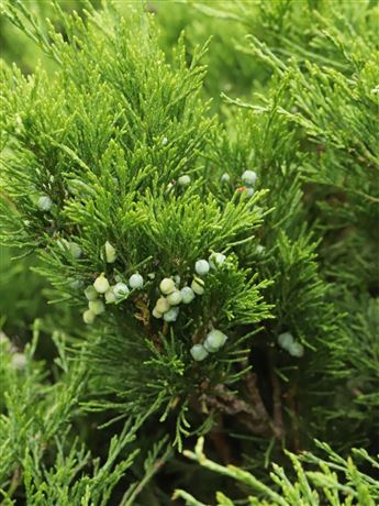 Juniperus sabina, známý také jako jalovec chvojka či šupinatý, je stálezelený keř dosahující výšky 1-2 metry a šířky až 4 metry. Roste nejlépe na plném slunci až polostínu a preferuje dobře propustnou půdu. Tento druh má tmavě zelené, jemně rozvětvené jehlice a rozložitý tvar. Pravidelná zálivka je důležitá zejména během suchých období, aby se zajistil zdravý růst. Jalovec je velmi odolný vůči mrazu a nevyžaduje mnoho péče. Je ideální pro živé ploty, skalky a jako solitérní rostlina. Prořezávání na konci zimy nebo na začátku jara podpoří nový růst. Juniperus sabina je mrazuvzdorný do USDA zóny 3-7, což znamená, že snáší teploty až do -40°C.