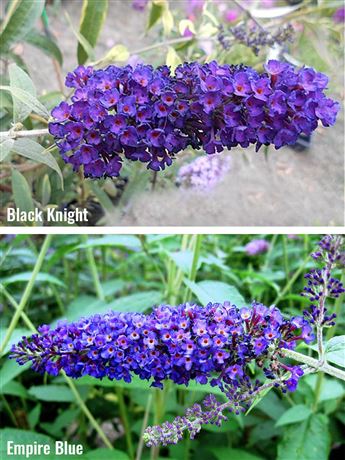 Buddleja davidii 'Black Knight' and 'Empire Blue'