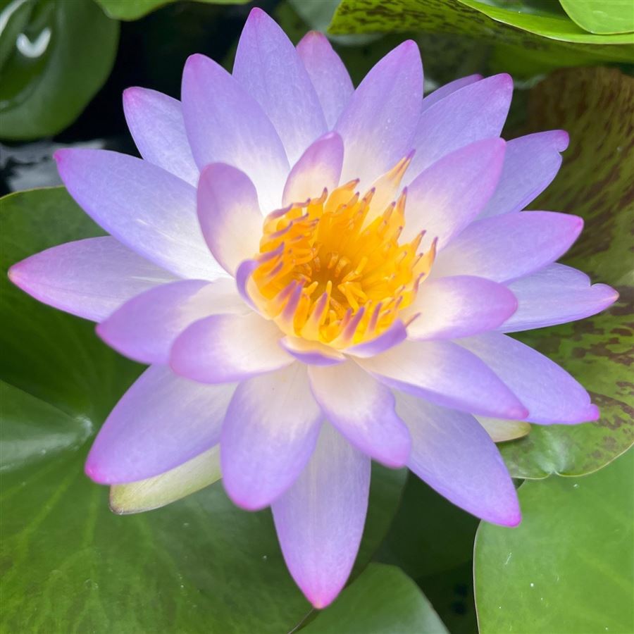 Nymphaea 'Siam Purple' je mrazuvzdorný vodní leknín s výraznými fialovo‑lila květy a pestrým listovým porostem, vhodný do středně velkých a větších jezírek.