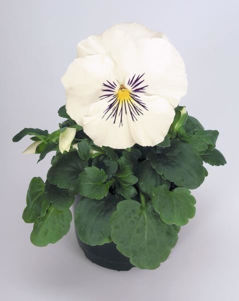 Velkokvětá maceška - bílé květy s neobvyklou kresbou kočičích vousků Zobrazit více