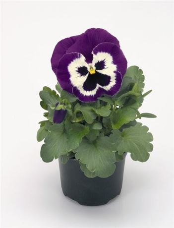 Velkokvětá maceška - fialová barva květu s tmavým středem lemovaným bílou maskou Zobrazit více