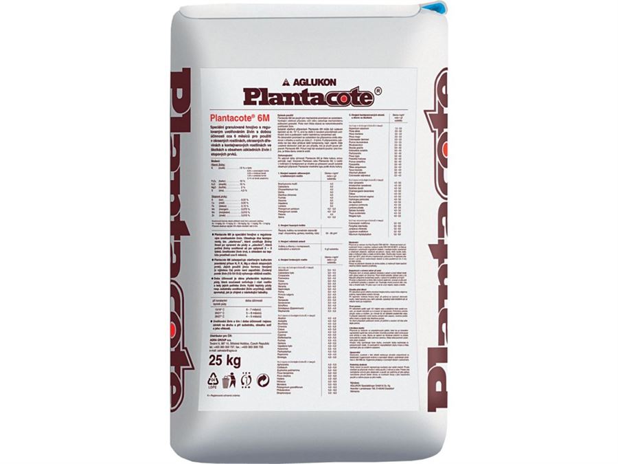 Plantacote 6 M je speciální granulované hnojivo s regulovaným uvolňováním živin s dobou účinnosti cca 6 měsíců pro použití v okrasných rostlinách, okrasných dřevinách a kontejnerových rostlinách ve školkách s obsahem základních živin a stopových prvků.