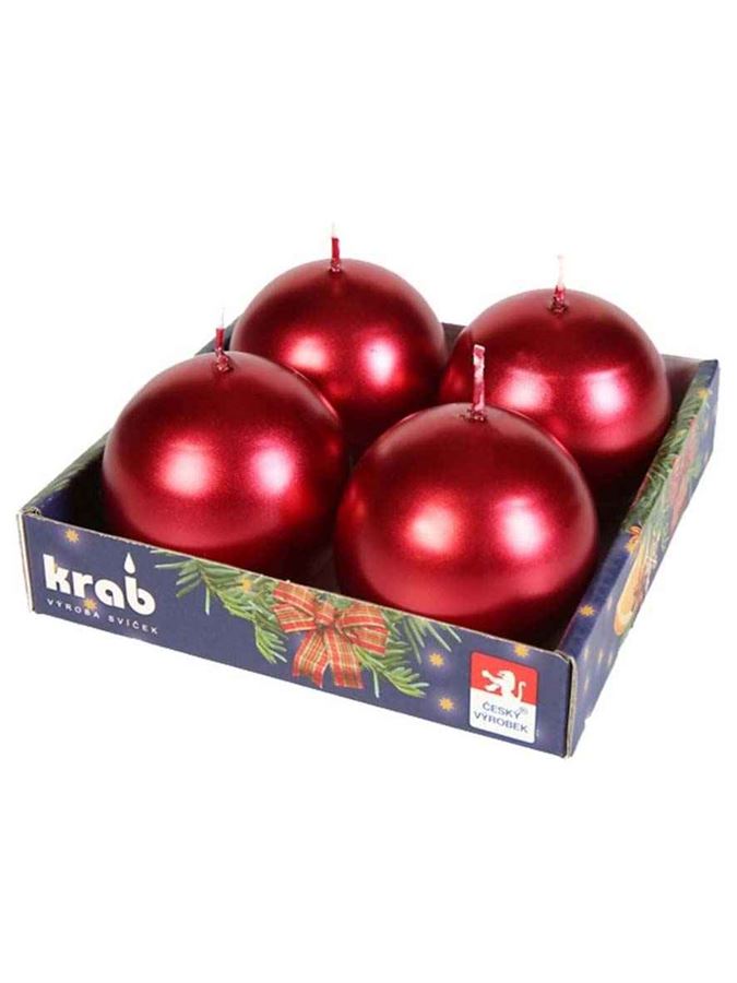 svíčka adventní koule 60 mm - metalická bordó 4ks