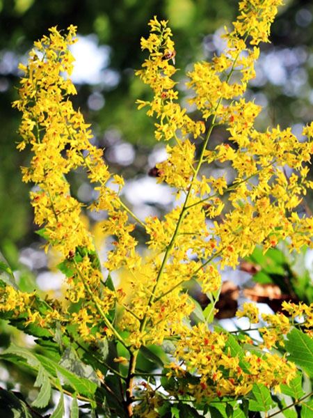 Koelreuteria paniculata, známá také jako svitel, je opadavý strom dosahující výšky 6-9 metrů. Roste nejlépe na plném slunci a preferuje dobře propustnou půdu. Tento druh kvete od léta do podzimu s jasně žlutými květy, které se později mění na dekorativní, nafouklé tobolky. Pravidelná zálivka je důležitá zejména během suchých období, aby se zajistil zdravý růst. Zlatý déšť je velmi odolný vůči mrazu a nevyžaduje mnoho péče. Je ideální pro solitérní výsadby, parky a velké zahrady. Prořezávání na konci zimy nebo na začátku jara podpoří nový růst. Koelreuteria paniculata je mrazuvzdorná do USDA zóny 5-9, což znamená, že snáší teploty až do -29°C.