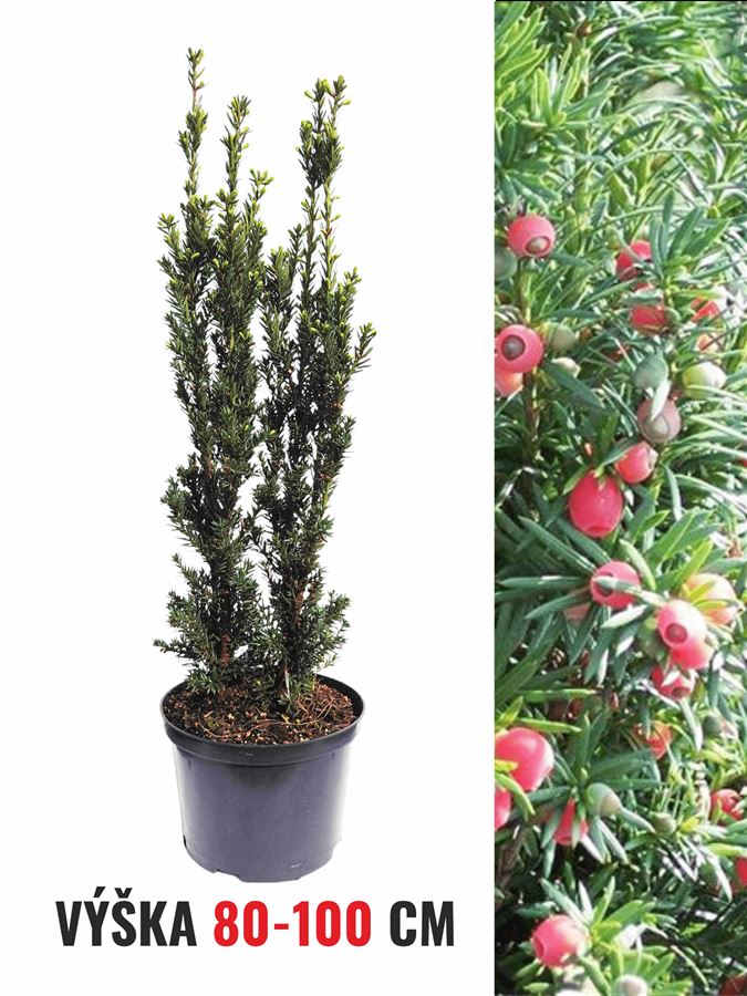 Taxus media 'Hicksii' je kultivar tisu, jehož růst je poměrně sloupovitý a v dospělosti dosahuje 3 metrů výšky při šířce 1 metru. Roste pomalu, velice kompaktně, zůstává košatý i ve spodních patrech a působí tak velmi bohatým dojmem. Vzhledem k menší velikosti ho doporučujeme do menších zahrádek. Jehlice má lesklé , sytě zelené.  Tis - Bývá často zatracen díky jeho jedovatosti, my však na tento stálezelený jehličnan v našem zahradnictví nedáme dopustit. Jako jediný totiž dokáže luxusně fungovat jak na slunci, tak v  polostínu, ale  i v úplném stínu. Uvnitř stromku / keře nevyholuje, jak je tomu zvykem například u smrků či tújí. Roste pomalu a velmi kompaktně, skvěle snáší řez. Díky absenci prosychání od středu se nemusíte bát razantnějšího střihu, protože se rychle zahustí a po zásahu nebude ani památky. K řezu ideálně přistupujeme koncem března. Ale nevadí mu ani jíný termín.  Navíc, jako úplně jediný jehličnan, dokáže obrazit i z pokáceného stromku, stačí mu nechat nad zemí kmínek o 15-20 cm. Jeho dřevo je ceněno po celá staletí - především se využívalo pro jeho pružnost a tvrdost  ke tvorbě zbraní, nábytku ale i šperků. Zamokřeným, težkým půdám se v jeho případě vyhněte, jinak je to ale chlapec velice přizpůsobivý a spokojený bude s málem. Hnojení není potřeba, avšak pokud si jednou za čas vzpomenete a přihodíte k němu trochu vyzrálého kompostu, bude rád. V našich podmínkách jsou tisy plně mrazuvzdorné, jen mladší rostliny doporučujeme při tužších zimách chránit nastýlkou. Starší kusy už si poradí sami.  Díky velké škále druhů , vzrůstu a habitu můžete tis použít jako impozantní solitéru, ve skalce ( menší druhy), úžasně se hodí na jakékoliv tvarování ( opravdu vám dovolí cokoliv) a pokud snad toužíte po hustém,  sexy živém plotu, který snese i silné znečištění , těžko najdete vhodnější rostlinu,  než je právě tis. Už chápete, proč ho tolik milujeme?