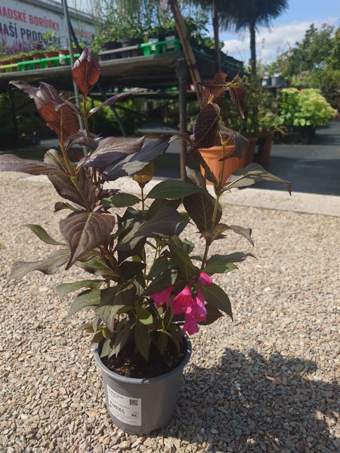 Weigela florida 'Minor Black' je okrasný keř s tmavě purpurovými listy a růžovými květy, které kvetou na jaře a začátkem léta. Keř dorůstá výšky 0,5-1 metr a šířky 0,5-1 metr. Preferuje slunná místa s dobře propustnou půdou. Tento keř je ceněn pro své atraktivní listy a květy. Pravidelně zalévejte, zejména v období sucha, a hnojte univerzálními hnojivy. Mulčujte kolem základny keře, aby se udržela vlhkost a potlačily plevele. Prořezávejte po odkvětu, aby se udržel kompaktní tvar a podpořil nový růst. Weigela florida 'Minor Black' je ideální pro záhony, okraje záhonů nebo jako solitér. Tento keř přitahuje motýly a další opylovače.