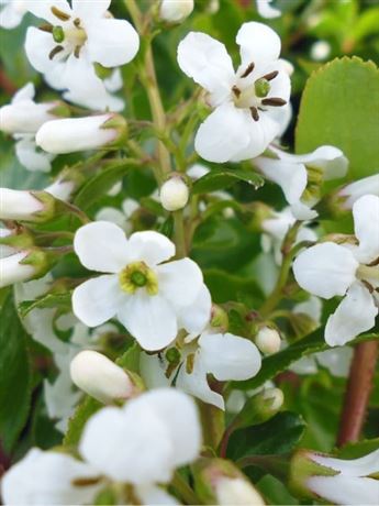 Escallonia 'Iveyi' je stálezelený keř dorůstající výšky až 2 metry. Kvete od léta do podzimu bílými květy, které jsou uspořádány v hustých latách. Listy jsou lesklé, tmavě zelené a velmi dekorativní. Tento keř je ceněný pro svůj rychlý růst a atraktivní vzhled po celý rok. Preferuje slunná až polostinná stanoviště a dobře propustné, úrodné půdy. Pravidelné zavlažování je důležité, zejména během suchých období. Mulčování pomáhá udržovat vlhkost v půdě a chrání kořeny před vysycháním. Je vhodný pro živé ploty, solitérní výsadbu nebo jako výplň v záhonech. Odolnost proti mrazu: Dobrá, odolává teplotám až do -15°C. Klima: Nejlépe se mu daří v mírném klimatu s dostatkem srážek a dobře odvodněnou půdou.