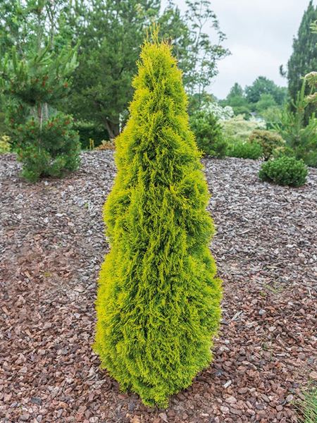Raritní jehličnan pro živé ploty. Jeho sytě zlatožluté jehlice vytvářejí vějířky a kuželovitý kompaktní tvar snižuje potřebu na tvarování. Zobrazit více